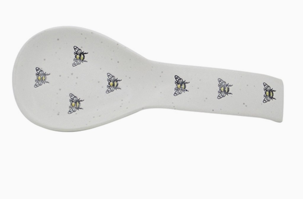 Meet the Barney Bee Repeat Spoon Rest from Blue Sky Clayworks. This unique kitchen accessory is more than just a functional item; it's a work of art. It's designed to keep your countertops clean while adding a touch of whimsy to your kitchen. As part of our handcrafted and hand painted ceramics collection, this spoon rest stands out with its artist-inspired design. It's a wonderful addition to any kitchen and a great gift for collectors.