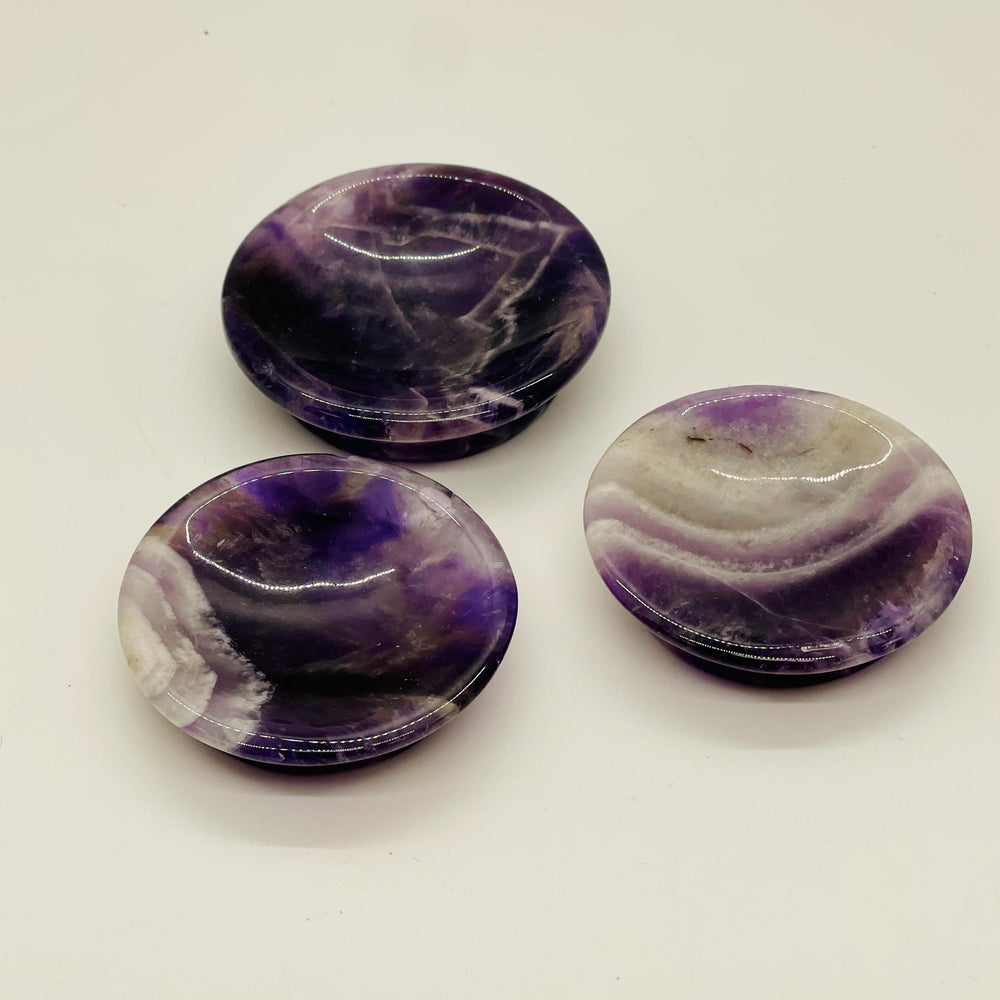 This beautifully crafted small Amethyst bowl is shaped like the moon and sun, making it a unique and elegant piece for your collection. Made from genuine Amethyst, each bowl showcases natural variations in color, size, and pattern, making every piece one-of-a-kind. Perfect for holding jewelry, crystals, or small trinkets, this gemstone bowl adds a touch of spiritual energy and tranquility to any space. Amethyst is known for its calming and protective properties, making this a meaningful gift or a stunning addition to your decor.