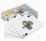 A 54-card playing deck from our Friendship Heart Gallery Collection displaying hand painted art of a bumble bee buzzing around yellow flowers on each card. Design is replicated from original art created at the Friendship Heart Gallery in downtown Lancaster, PA that supports artists with intellectual disabilities and autism. Our Bumblebee playing cards are packaged in a protective acrylic case for easy storage when not in use or traveling. A fun bee-themed accessory perfect for gifting and on the go games.