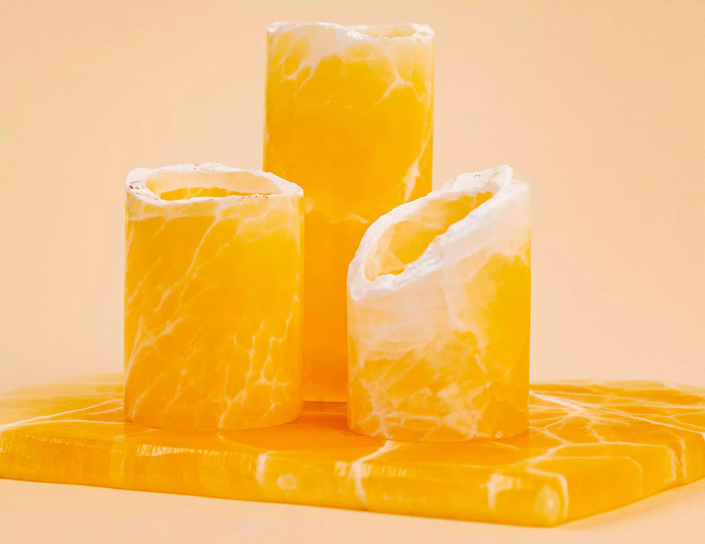 The Utah Honeycomb Calcite 2" Small Pillar is a stunning piece, perfect for votive candles or as a radiant display item on its own. Handcrafted from natural honeycomb calcite sourced in Utah, each pillar features unique honey-toned, translucent layers that create a warm, inviting glow when lit from within. This 2" size is perfect for any space, adding a touch of earthy elegance and a soothing ambiance to your home or office. The natural variations in color and pattern make each piece one-of-a-kind, adding an organic touch that beautifully complements any decor.