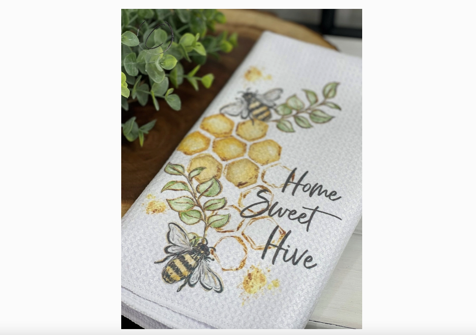 The design is part of the towel and not vinyl or any sort of sticker. At 16" x 24," these are the perfect addition to any kitchen or bathroom. The waffle pocket pattern helps whisk away water while the surface of the cloth stays dry, making it a cleaning and drying wonder! Wash in cold water, dry on low, do not bleach.