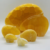 The Honeycomb Calcite Bear is a beautifully crafted sculpture made from honeycomb calcite, a unique stone found only in Utah. This bear carving showcases rich amber and honey tones with translucent qualities that allow light to shine through, highlighting the natural patterns and warm glow of the stone. Symbolizing strength, courage, and resilience, the bear adds an earthy, grounding presence to any space. Each piece is hand-carved, making it one-of-a-kind, with subtle variations in color and texture. Ideal as a decorative piece or a meaningful gift, this Honeycomb Calcite Bear brings natural beauty and serene energy to your home