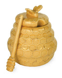 Ceramic Honey Plant & Dipper Set with embossed bee and honeycomb pattern